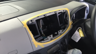 スペーシアのダッシュボードにマスキングをして、キズが入らない様にします。