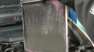 エアコンガスが抜けている様ですので、まずは目視でエアコンガスが漏れて射ないか点検しました。